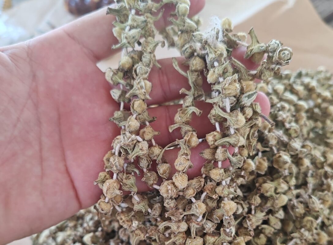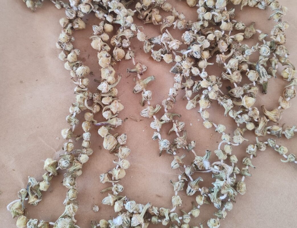 - Bamyaların ipe dizilmesi